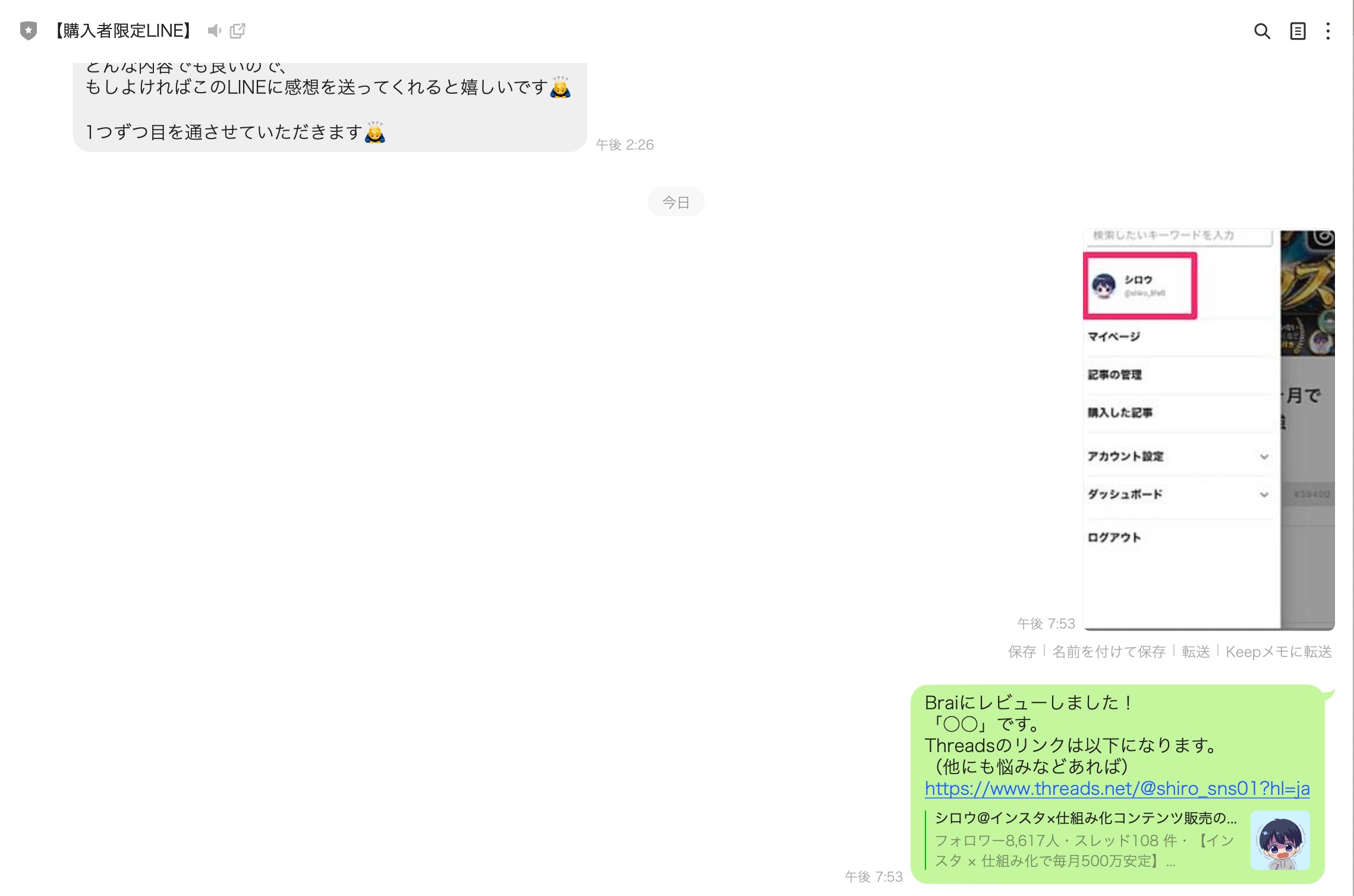 ②:Brainのアカウントのスクショを購入者限定公式LINEに送る