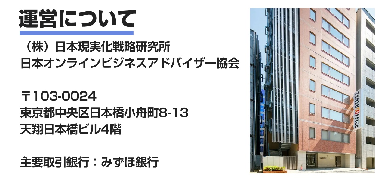 東京都中央区日本橋小舟町8-13 天翔日本橋ビル 4階 © 2024 久家邦彦 (株)日本現実化戦略研究所(まる現®). All rights reserved.